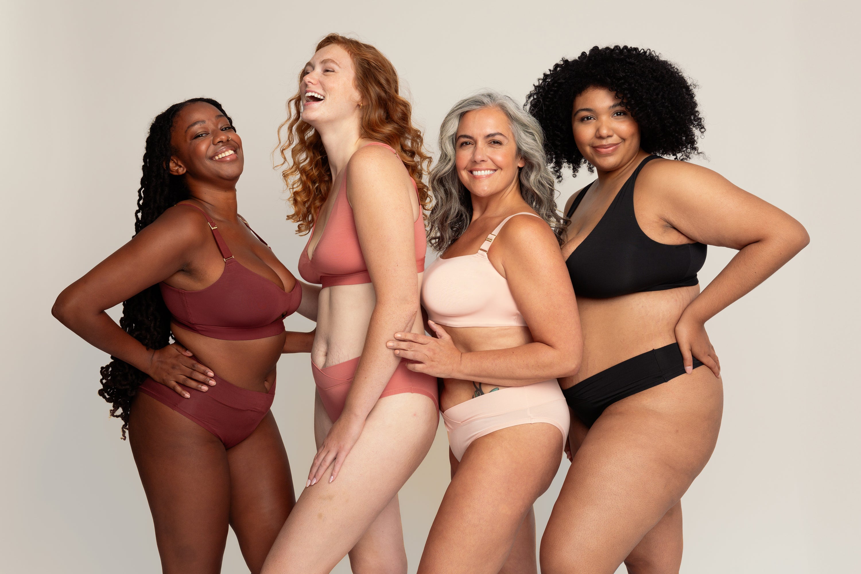 NOTE: Our fabric is really stretchy and two sizes may work for you. If you fall between D + DD, scroll down for more info on how to best decide your fit.