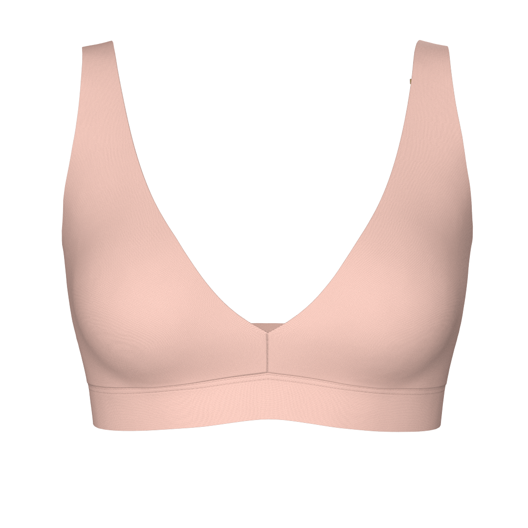 Plunge Bra | Pink Sand comfortable wireless bras, womens bras made of TENCEL modal plunge halter bra, sustainable bras, plunge bralette iteration